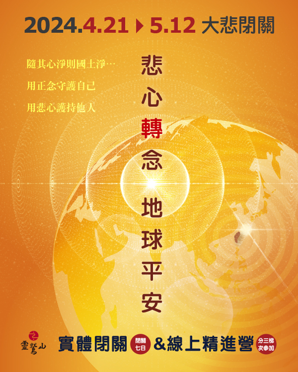 ※未皈依者,請於4月13日(六)完成線上報名,統一參加4月20日(六)線上皈依(僅此一場),皈依後才具閉關學員資格,4月13日後不再受理未皈依者報名,皈依相關訊息會另行通知。