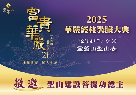 2025年華嚴經柱裝臟大典謹訂定於12/14(日)舉行,