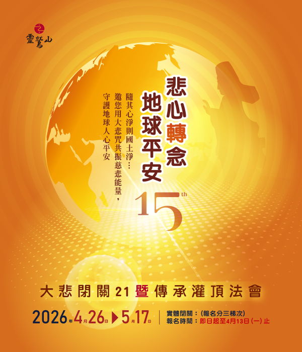 誠摯邀請您把握這難得的因緣,走入 21 天的「大悲閉關」,讓每一聲咒音、每一份悲心,成為安定人心、護念世界的力量,與眾同行,為自己,也為地球發願。