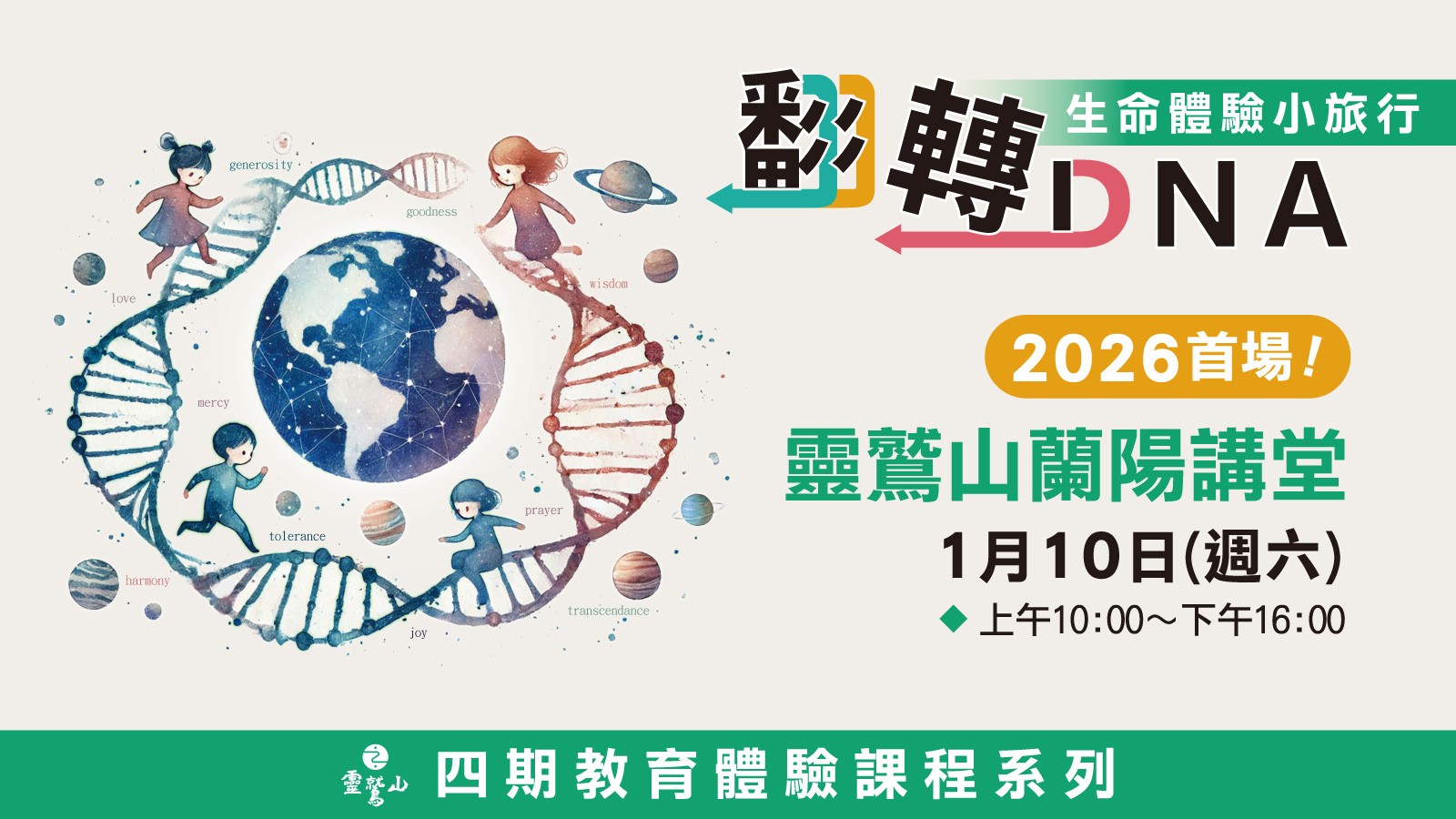這場體驗課程,將引導我們回到生命最根本的力量──心念,去重新編碼生命的方向。正如靈鷲山開山大和尚心道法師說:「生命中發生的一切,都是心念而生的因果,心念就是DNA,心念就是記憶體。 」