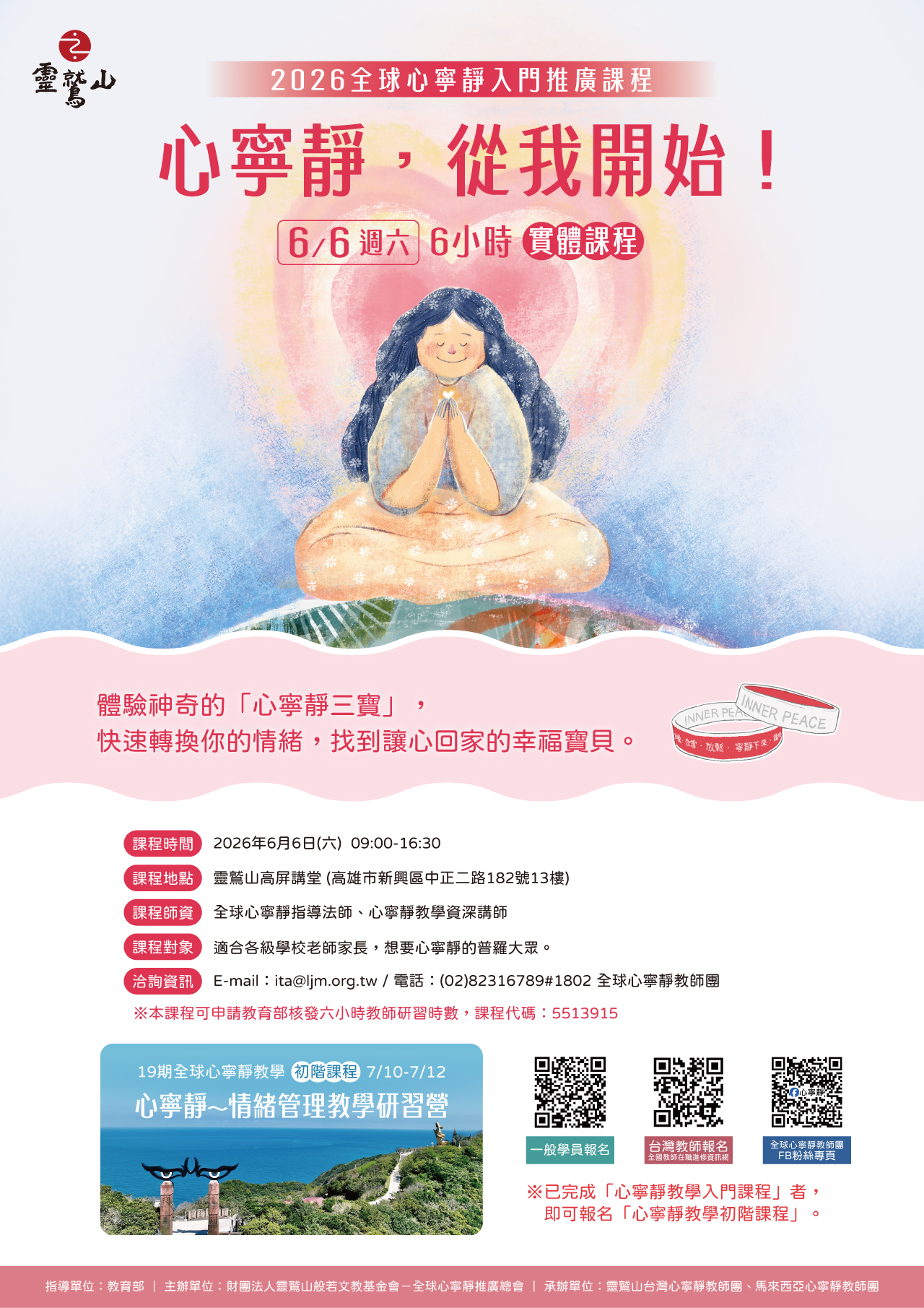 於2026年特別規劃6小時實體課程,從線上課程設計轉化加強互動與體驗,透過面對面的教學和交流,達到更有效的心寧靜學習,「心寧靜,從我開始!」適合每一個人。