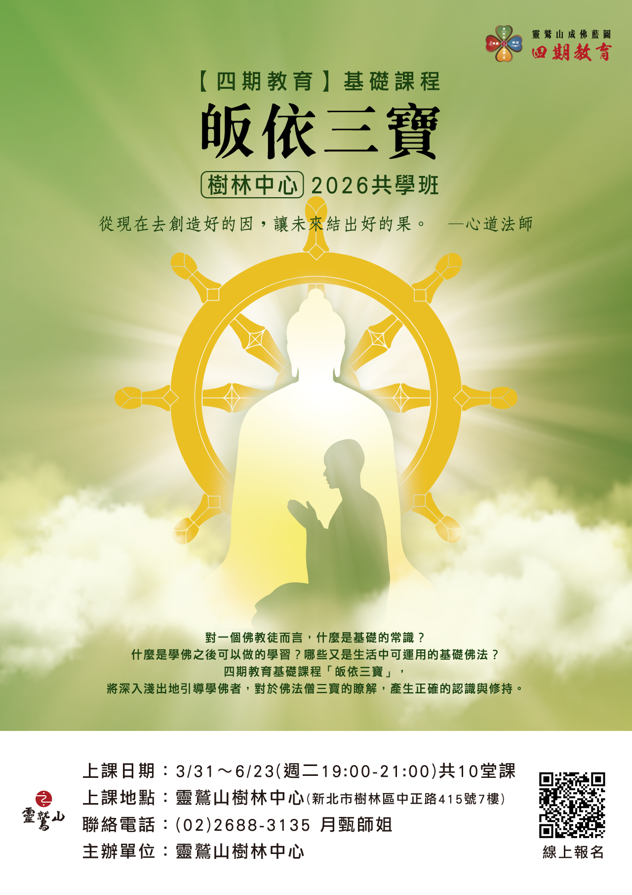 上課地點:靈鷲山樹林中心(新北市樹林區中正路415號7樓)