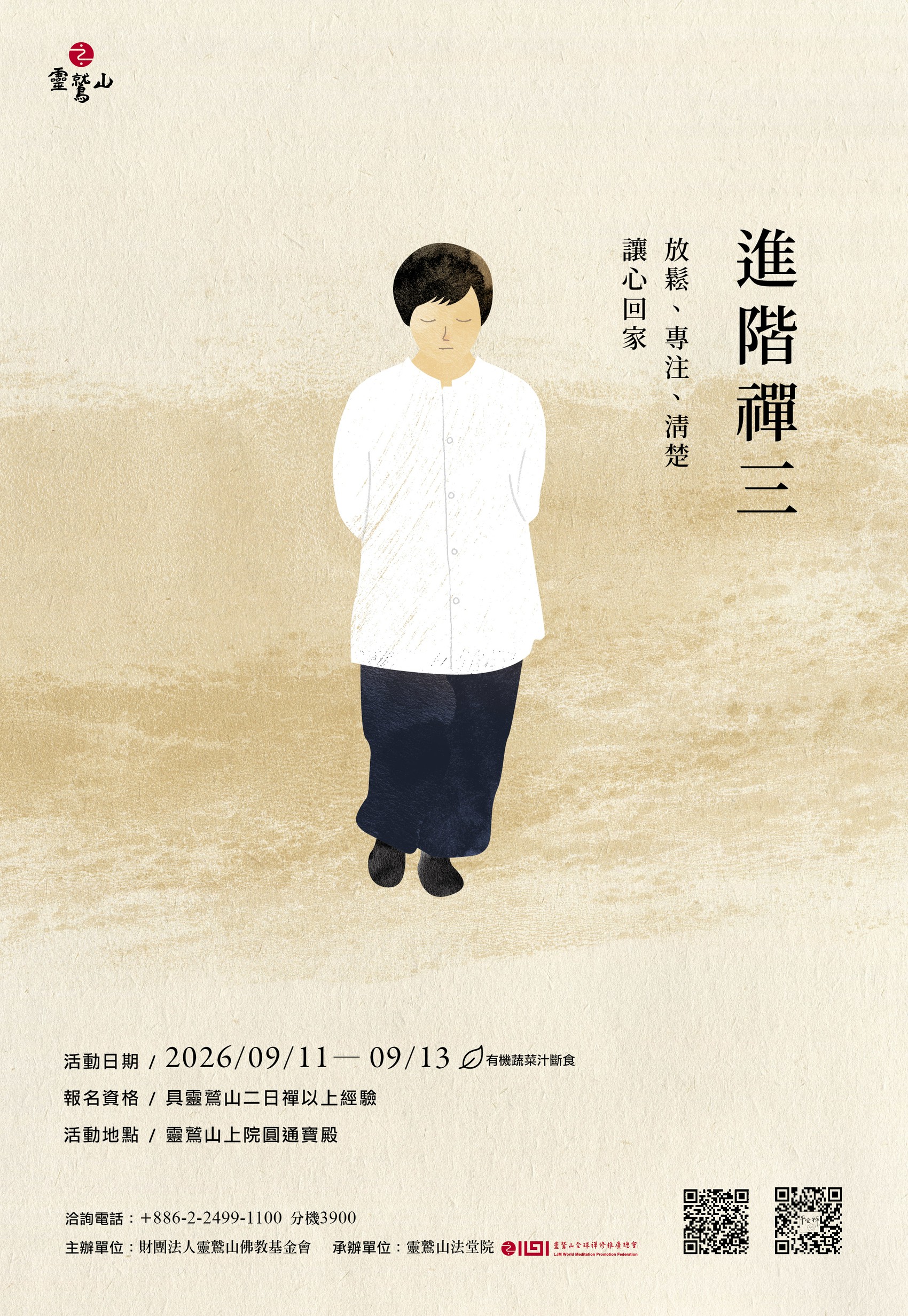 已完整學過平安禪法門(具一日禪以上經驗),想要短時間密集深入修習,在放鬆、專注與清楚之間,讓心回家。