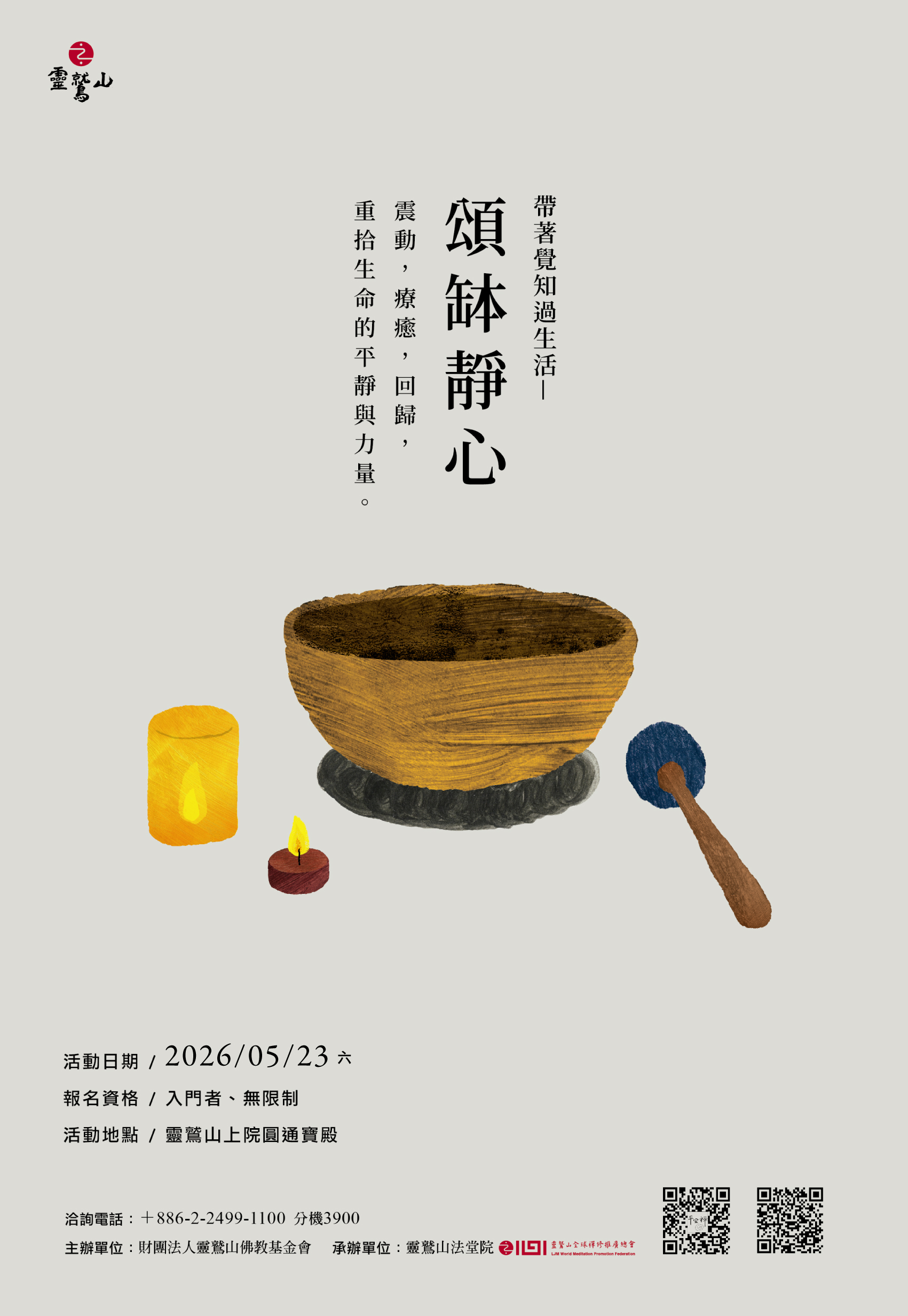 透過呼吸、頌缽、吟唱學習身心放鬆、靜心的方法在聲音與聆聽之間,探索生命安定的本源。